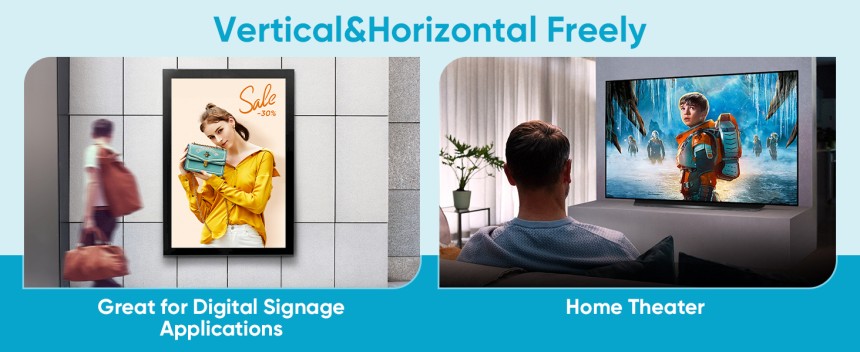 - ▶️ Affichage d'écran vertical et d'épissage : Avec une sortie d'image rotative, 270 degrés, plusieurs paramètres, flexible et polyvalent compatible avec votre écran vertical, permet à quiconque d'utiliser facilement de beaux panneaux numériques, vous pouvez l'utiliser sur votre écran publicitaire pour afficher votre vidéo publicitaire.
