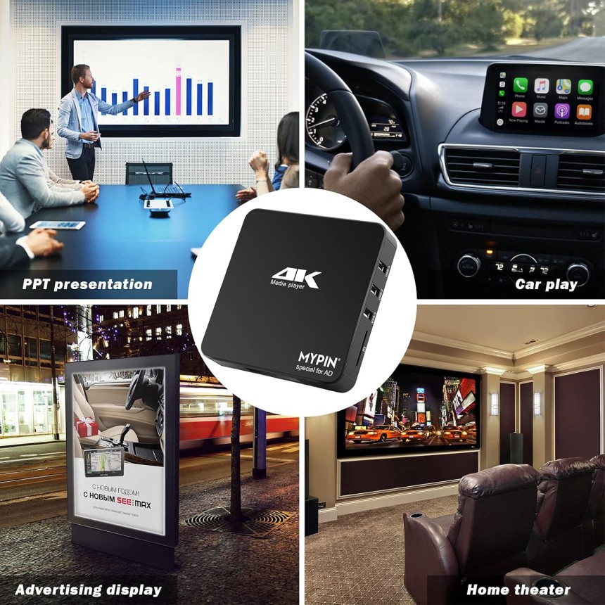 - ▶️ Prise en charge de la lecture vidéo/image/musique/PPT et mode automatique/boucle : Ce 4k lecteur multimédia pour TV peut lire diverses vidéos, musiques et photos populaires. Il a une lecture répétée, une lecture automatique et un mode de lecture aléatoire ; Il lit également le document PPT. Vous pouvez choisir une variété de modes de jeu : simple, séquentiel. Surtout pour la lecture aléatoire de vidéos, de musique et d'images.
