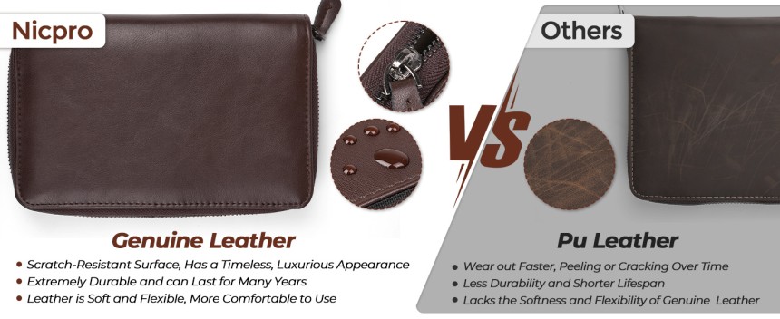 - ▶️ Étui en cuir : fabriqué en cuir véritable avec fermeture éclair solide, durable, qualité garantie. Taille de la boîte : 16,7 x 7,6 x 2,5 cm, comprend une prise indépendante pour stylo, une poche en filet qui peut stocker de petits objets