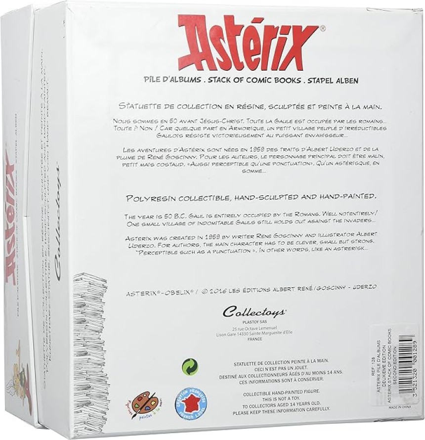 - ▶️ Astérix à côté d'une pile d'albums avec Idéfix. Statuette réalisée entièrement en résine et peinte à la main. Hauteur: 23cm. Pour les véritables amateurs de BD franco-belge.