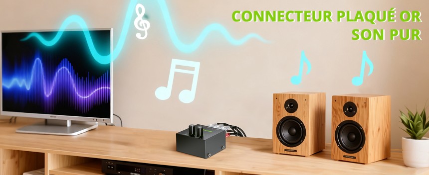 - ▶️ Interfaces RCA Dorées Haute Fidélité : Tous les connecteurs d’entrée et de sortie sont plaqués or pour assurer une connexion stable, résistante à l’oxydation et un transfert de signal pur avec une perte minimale