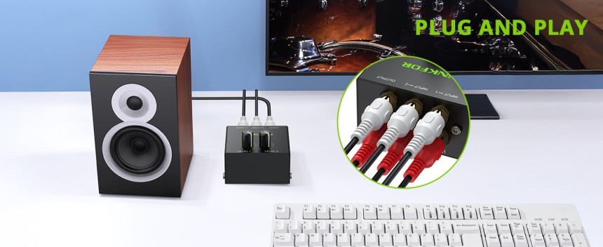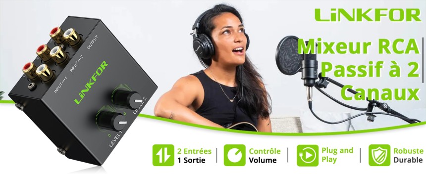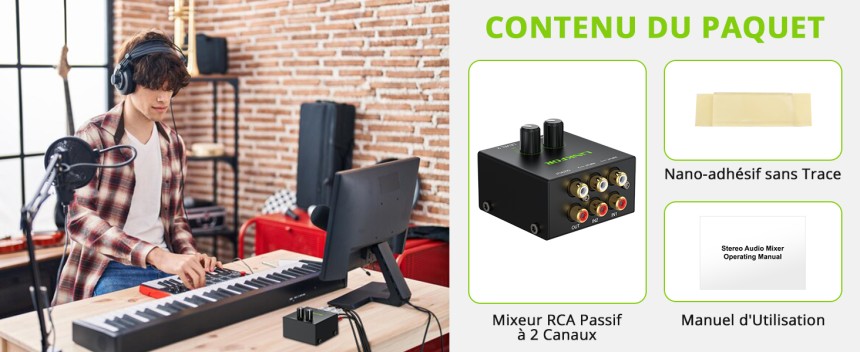 - ▶️ Mixage 2 Sources Stéréo Simultanées : Combine deux sources audio comme votre PC et votre console de jeu via les entrées RCA pour une sortie unifiée vers votre ampli ou vos enceintes, éliminant le changement constant de câbles
