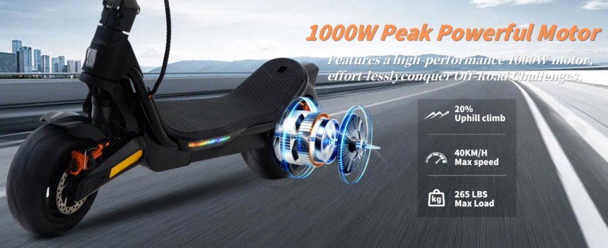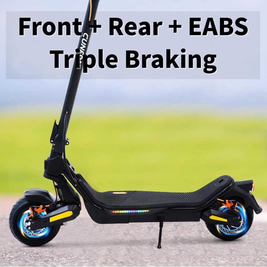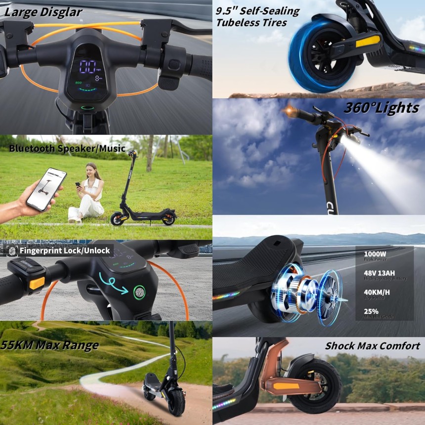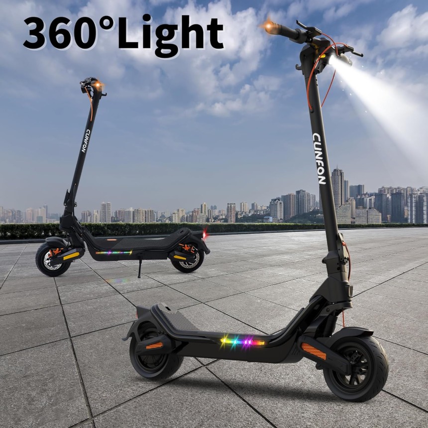 CUNFON Nouvelle Trottinette Electrique Adulte, Max Moteur 1000W, 9.5" Tout Terrain Trotinette Electrique Pliable, Batterie 13 Ah, Double Amortisseurs, Double Frein, avec App, Autonomie 45-55KM.