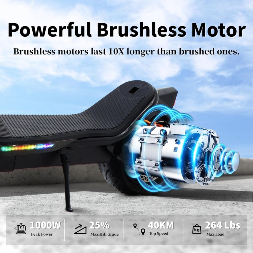 - ▶️ Passion et rapidité : Le scooter électrique est doté d'un puissant moteur sans balais de 500W (1000 W crête) vous apportant une accélération plus rapide. il monte plus rapidement, même sur des pentes de 30%, et s'adapte facilement aux différentes altitudes et aux routes accidentées. La batterie haute capacité vous permet de parcourir jusqu'à 45-55 km en une seule charge et de transporter jusqu'à 330 Lbs dans certaines conditions