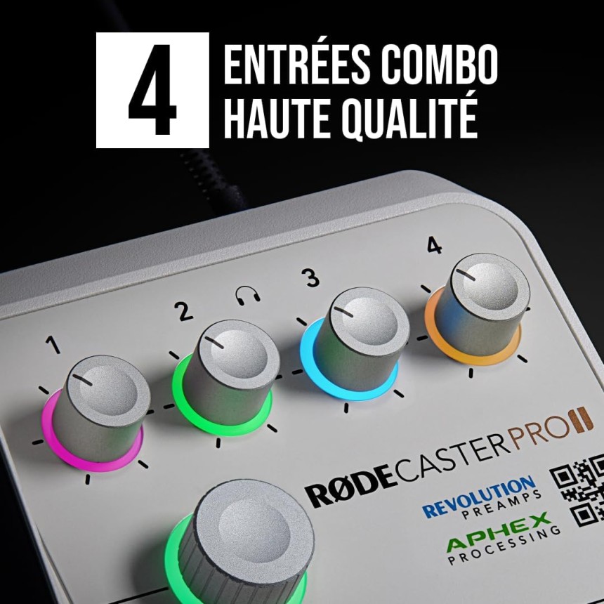 - ▶️ RODECaster Pro II : La console de production audio tout-en-un la plus puissante au monde. Rassemblant des équipements audio valant plusieurs dizaines de milliers de dollars au sein d’une simple console facile d’utilisation, la console RØDECaster Pro II est l’équipement ultime pour enregistrer un son d’exception, quel que soit le contenu créé.