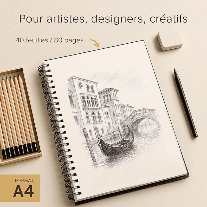 - ▶️ 1x Carnet à Dessin Relié - A4 - avec 40 feuilles