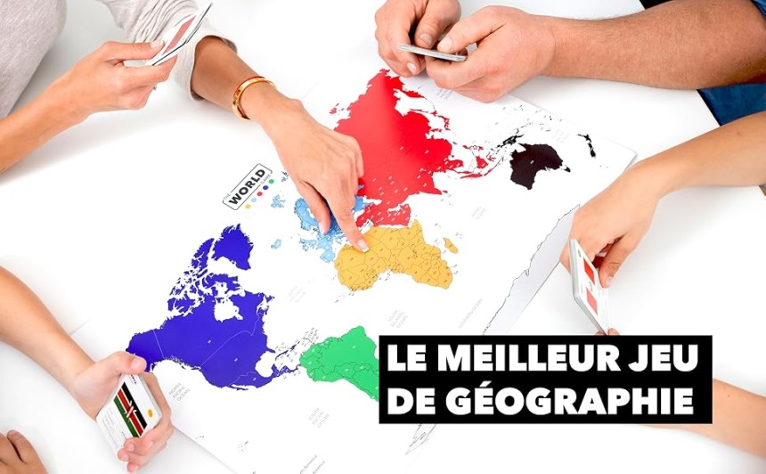 Jeu de Société Géographie avec Carte du Monde - Pour Enfant & Famille & Adultes - Français.