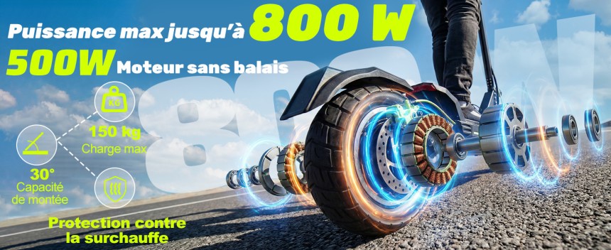 - ▶️ Trottinette électrique adulte puissante : Cette trottinette électrique adulte est équipée d’un moteur sans balais de 500 W (puissance maximale 800 W), capable de gravir facilement des pentes jusqu’à 30°.La vitesse maximale est limitée à 25 km/h (Vitesse maximale réglable), avec réglage de la vitesse via l’écran de contrôle, conformément à la réglementation en vigueur.Les 3 modes de vitesse et le régulateur de vitesse (cruise control) assurent une conduite confortable, idéale pour les trajets quotidiens comme pour les longues distances. Une trottinette électrique adultes performante et fiable.