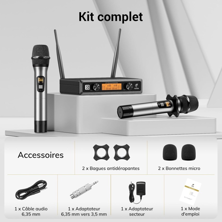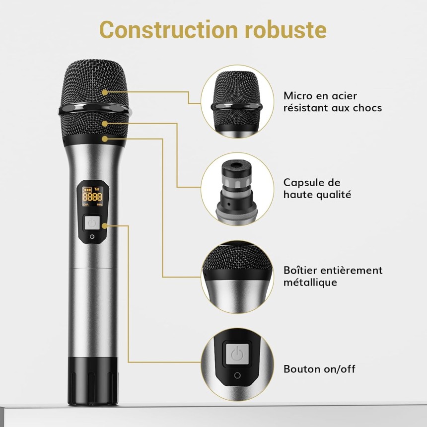 TW820 2 Microphone à main - sans fil UHF sans fil professionnel dynamique - 60 mètre - double système de microphone à main kit KTV pour karaoké, fête, DJ, église, mariage, réunion.