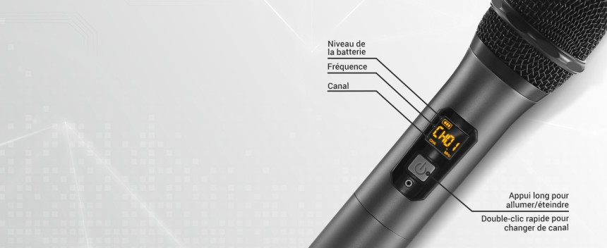 - ▶️ MATÉRIAU ROBUSTE ET DURABLE : microphone entièrement métallique avec maille en acier, très résistant aux chocs et à la corrosion. Il est très robuste et durable. Le boîtier de réception métallique est équipé d'un écran LCD sur lequel la fréquence, le signal, le niveau de la batterie et d'autres informations sont clairement visibles en un coup d'œil.