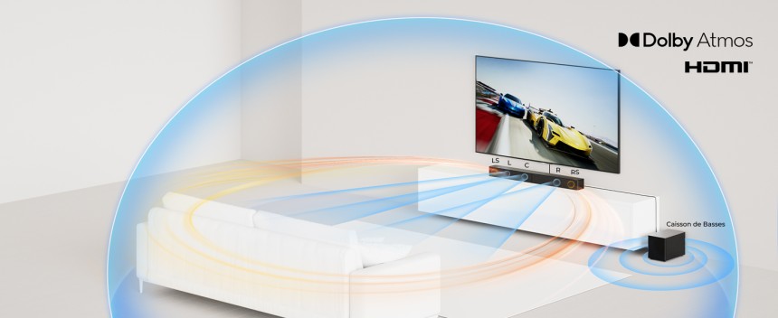 Barre de Son TV avec Dolby Atmos + 5.1ch + Puissance : 340W RMS