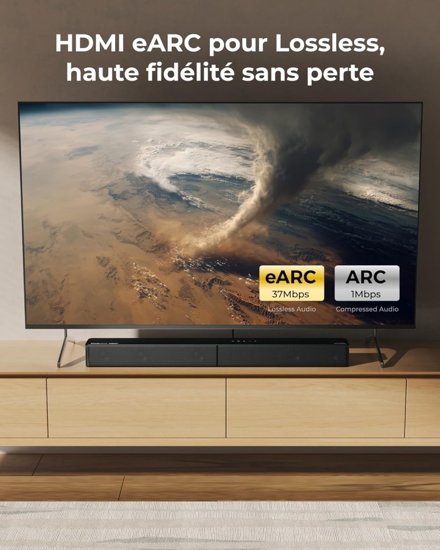 - ▶️ Profitez EQ graphique 10 bandes, de 121 préréglages sonores et de 13 niveaux surround réglables, pour adapter le son à votre pièce et vos préférences.