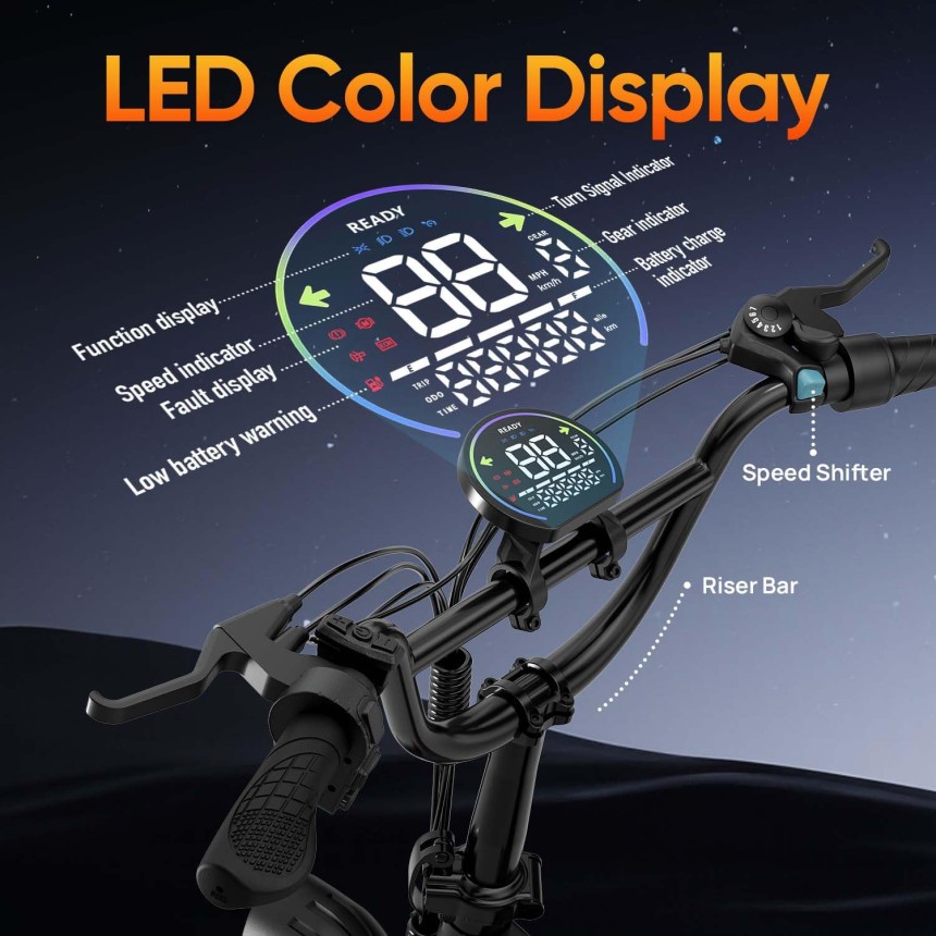 - ▶️ Performances polyvalentes : Équipé d'un changement 7 vitesses et 3 modes de conduite, ce vélo électrique s'adapte sans effort à tout terrain pour des déplacements fluides en ville. Son écran LED intuitif affiche les données de conduite en temps réel, avec une excellente lisibilité même sous forte irradiation solaire.