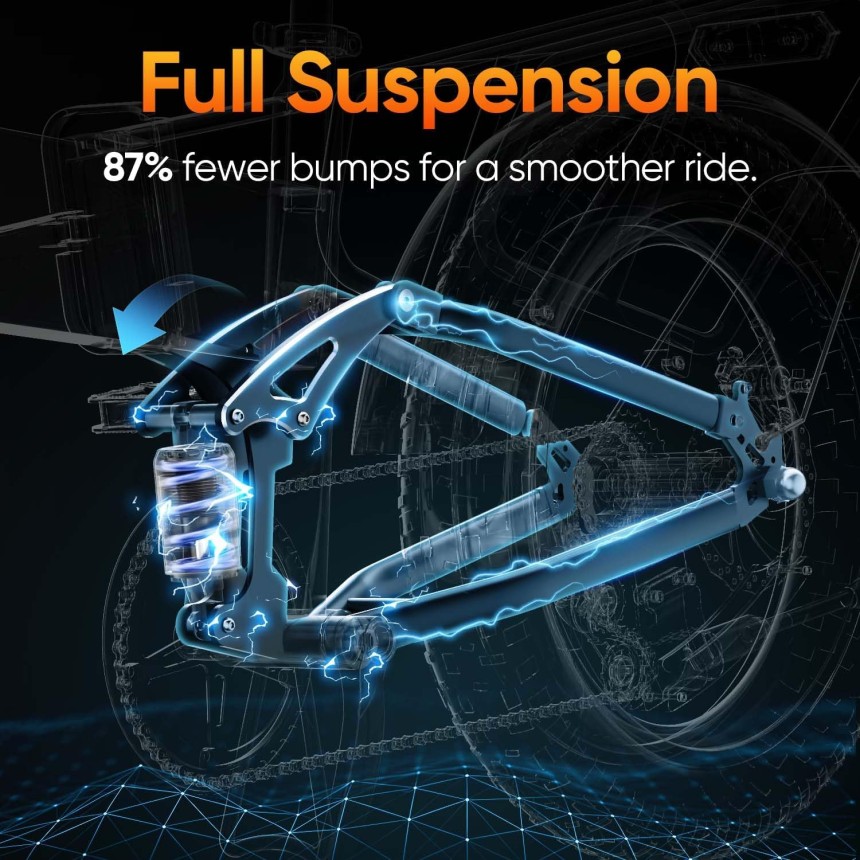 URLIFE Vélo électrique pliant 20 x 4,0" Fat Tire E Bike pour homme avec batterie amovible 48 V 13 Ah longue portée jusqu'à 80-100 km, suspension complète pour tous les types de terrain, 7 vitesses.