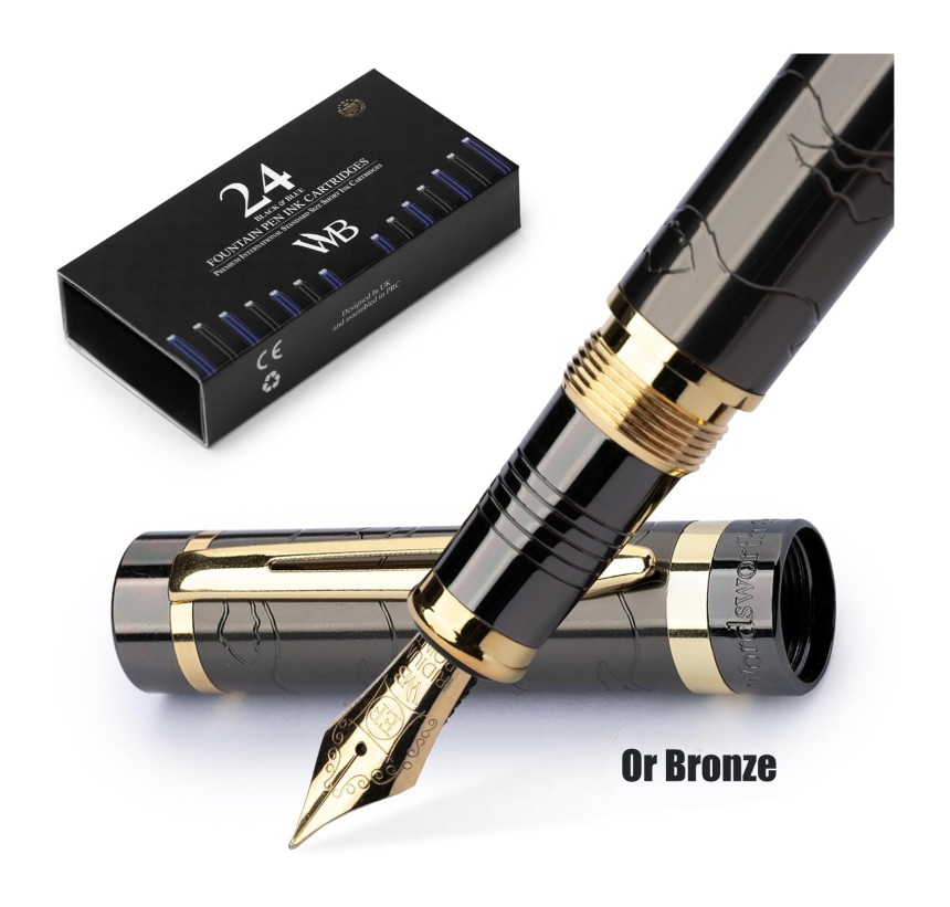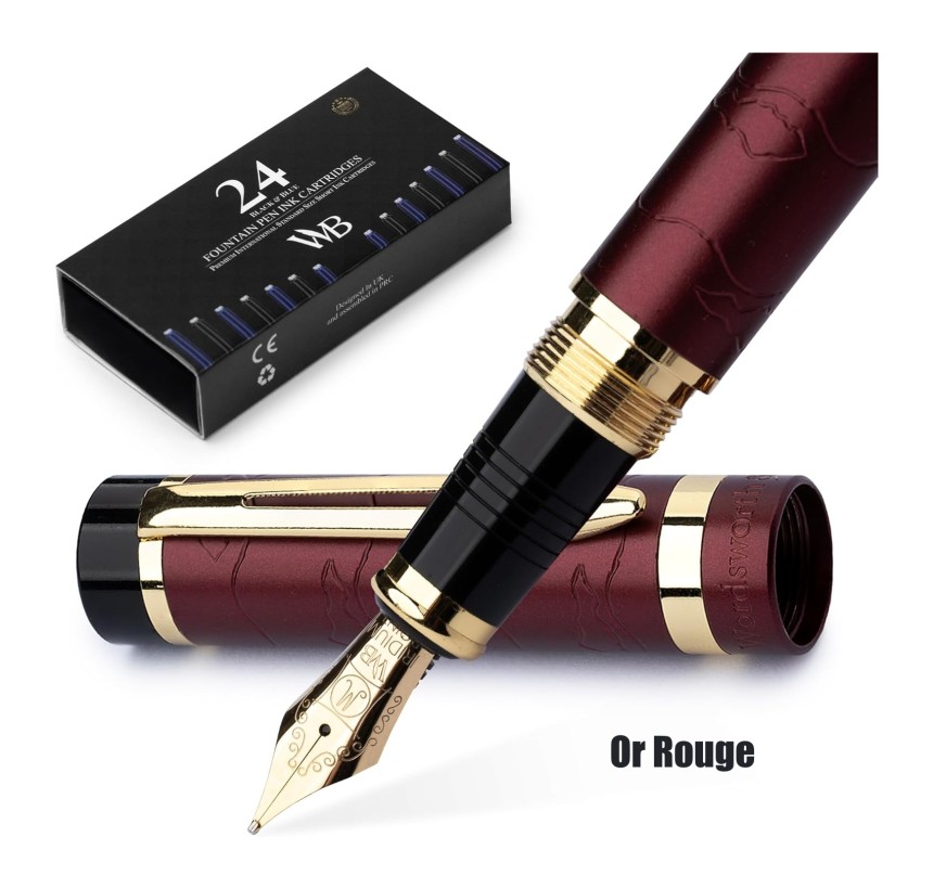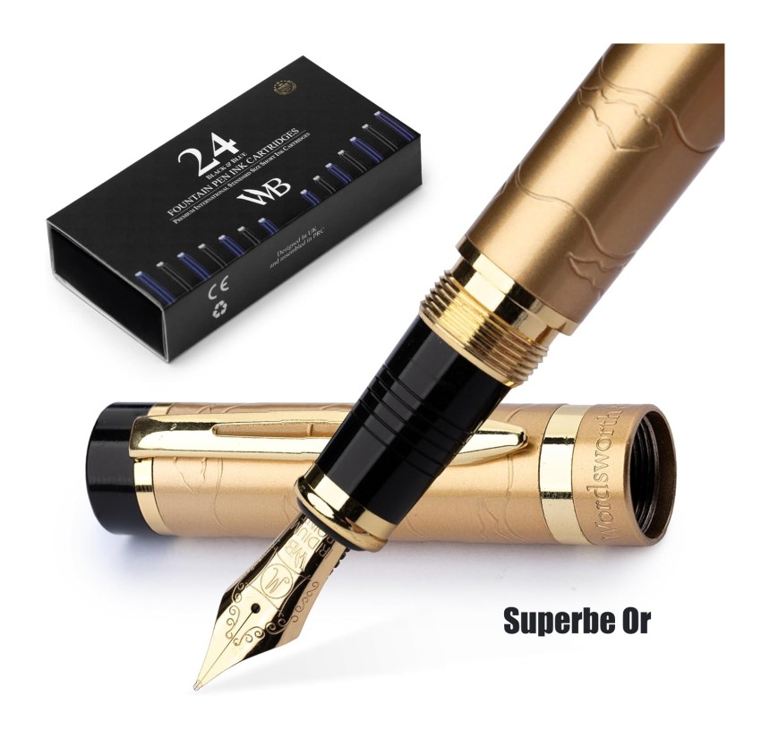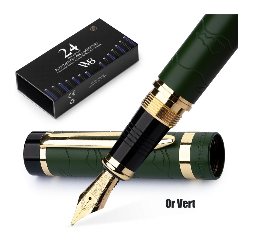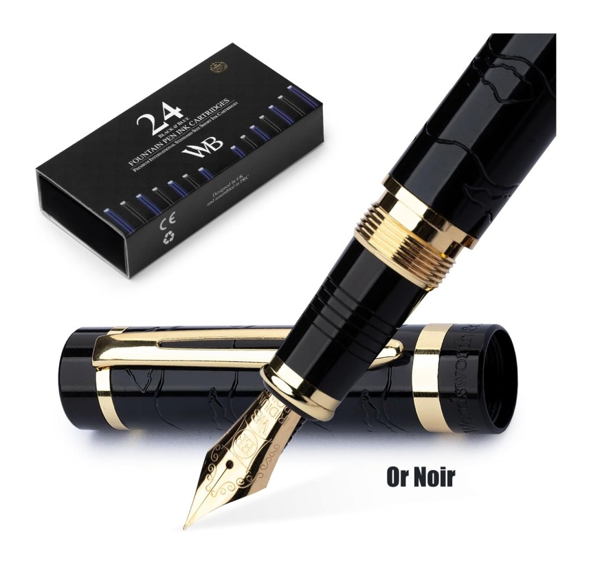 - ▶️ Découvrez L'ensemble De Stylos Plume Rechargeables Tout Compris - Comprend un luxueux stylo plume Primori, un convertisseur d'encre, un convertisseur d'encre, 12 cartouches d'encre bleues et 12 x noires, un étui à stylos en cuir de qualité supérieure et un coffret cadeau de luxe - prêt à être offert. Un livret d'instructions complet pour votre ensemble de stylos Wordsworth et noir inclus pour commencer à utiliser et profiter de votre outil d'écriture luxueux sera à portée de main !