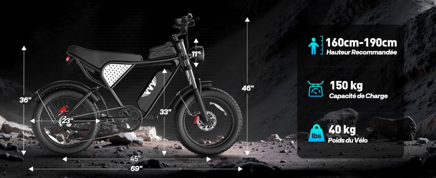 - ▶️ Moteur puissant : Le vélo électrique YVY C20 est équipé de puissants moteurs sans balais développant un couple maximal de 90 Nm, ce qui lui permet de gravir sans peine des pentes abruptes à 35° et vous permet d'explorer de nouveaux horizons en toute confiance.