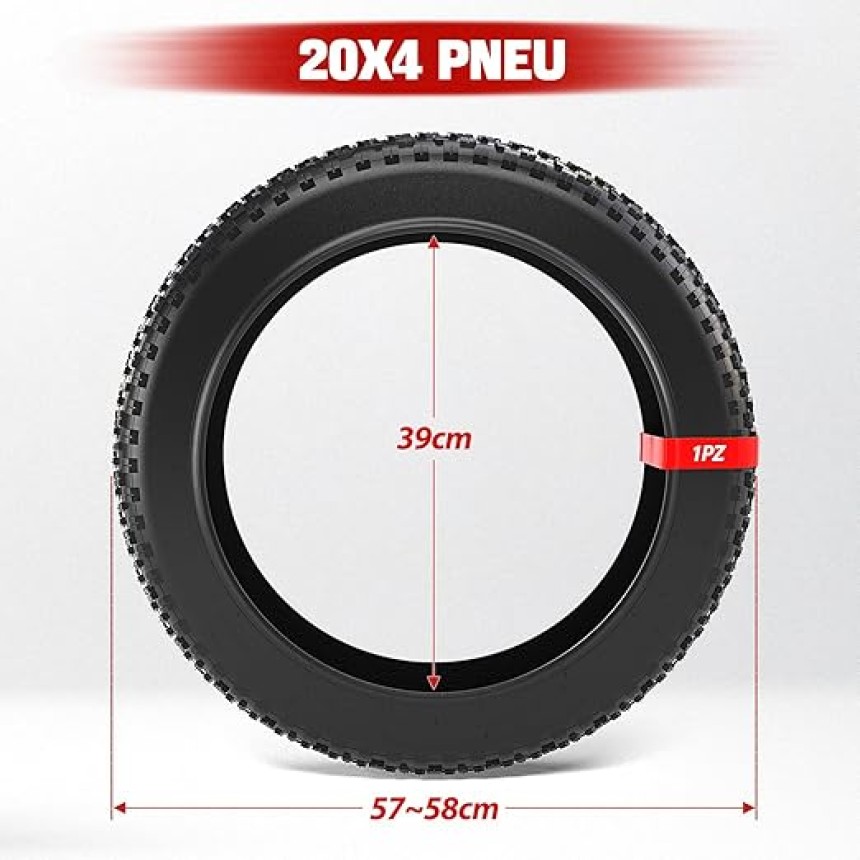 - ▶️ Large application : 1PZ pneu de vélo 20 x 4.0 est un pneu de vélo unique conçu pour le trail. Excellente résistance à la perforation pour le remplacement des pneus de vélo, de vélo électrique, de neige et de VTT.
