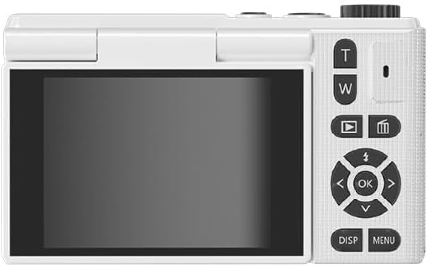 - ▶️ Écran IPS basculant de 2,83 pouces à 180° : Notre appareil photo numérique est équipé d'un écran tactile premium qui se bascule à 180°, conçu pour les selfies et les vlogs. Contrôlez facilement votre cadrage et vos expressions en temps réel. L'écran LCD haute résolution de 2,83 pouces vous permet de revoir instantanément vos clichés pour vérifier les détails sur place, assurant ainsi des selfies parfaits à partager immédiatement.