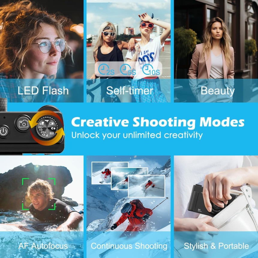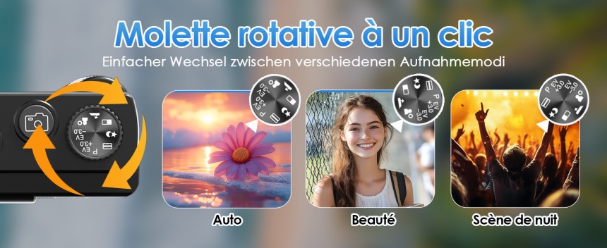 - ▶️ Fonctions polyvalentes pour toutes les scènes :Le camera digital dispose de fonctions telles que le retardateur pour selfies, la prise de vue en rafale et un autofocus haute performance pour ne jamais manquer le cliché parfait. Que ce soit pour un groupe en voyage scolaire, une fête d'anniversaire ou un événement sportif. Les filtres intégrés vous permettent de modifier facilement l'ambiance de vos photos après la prise de vue, pour un partage sur les réseaux sociaux encore plus attractif.
