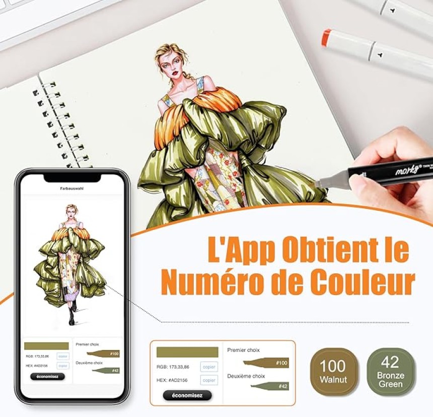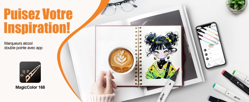 - ▶️ Feutres Dessin de 168 + 2 Couleurs Feutre a Alcool avec App Gratuite