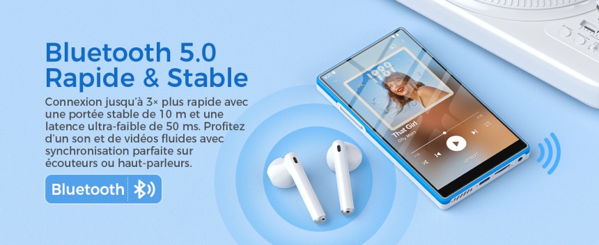 - ▶️ Grand écran 5" HD immersif : Écran 5" 720×1280 In-Cell, nettement plus net que les écrans classiques. Résout le souci du petit écran : paroles, pochettes et menus sont lisibles. Parfait pour les passionnés d’images, clips et pochettes. Un vrai confort d'utilisation comparé aux anciens lecteurs mp3 à petit écran.