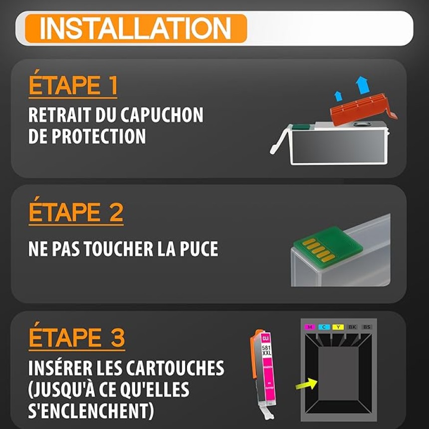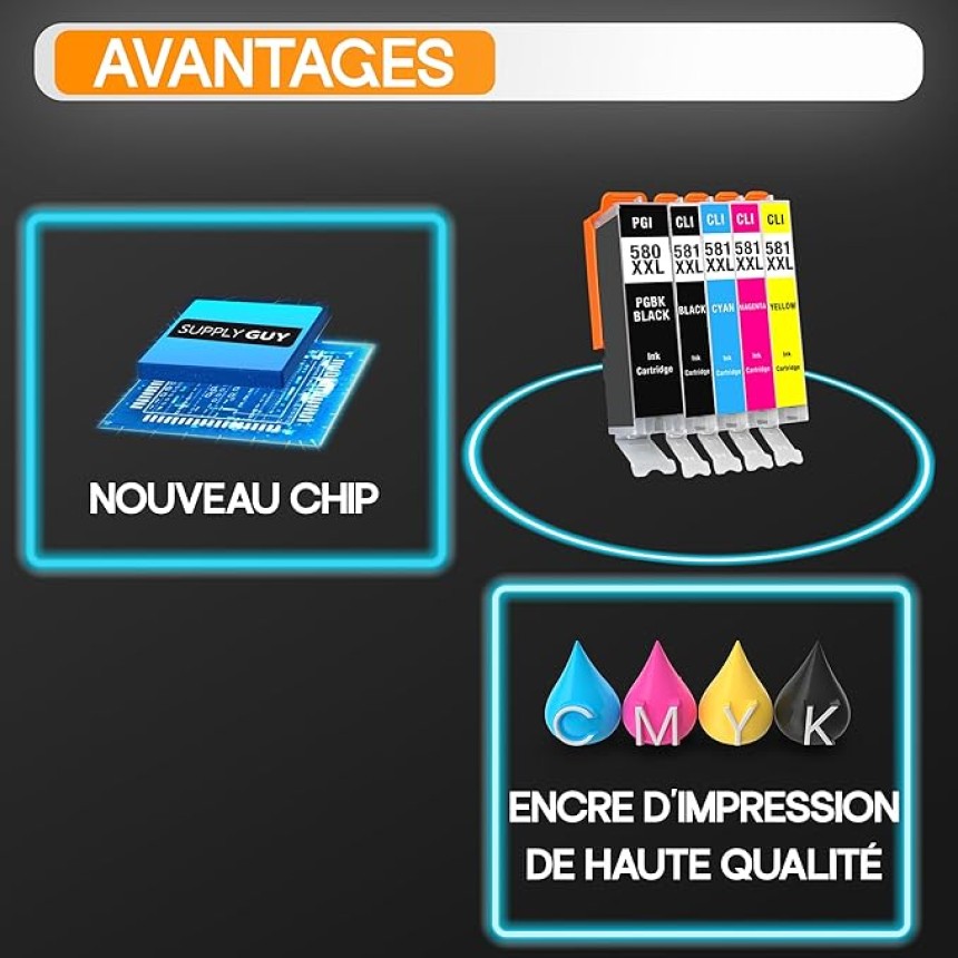 - ▶️ Couleur de l’encre : Noir, cyan, magenta, jaune