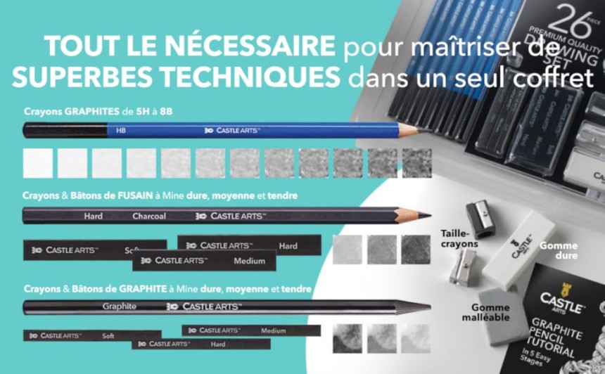 - ▶️ Compact mais complet : Pièces sélectionnées par nos experts, pour les artistes débutants et les dessinateurs plus expérimentés : 12 crayons graphites, 3 bâtons de graphite, 1 crayon graphite à dessin tendre, 3 fusains et des outils. Une excellente sélection pour les enseignants.