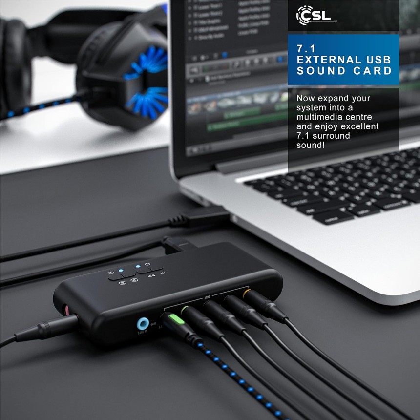 - ▶️ Désignation du modèle : CSL USB 7.1 carte son externe (Channel Encoder) pour maximum 8 haut-parleurs