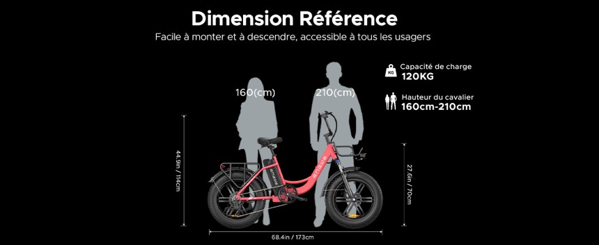 ▶️ Un design confortable et élégant : le vélo électrique L20 est doté d'un cadre bas confortable et d'une selle réglable qui convient à toutes les tailles. Un ensemble qui allie confort et style.