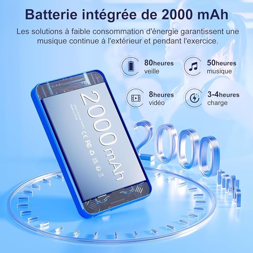- ▶️ Durée de vie moyenne de la batterie : 3h de charge à 2000mAh + 50h de Musique ou 8h de vidéo avec écouteurs filaires à 50% de volume