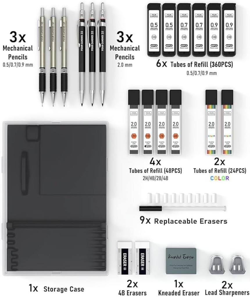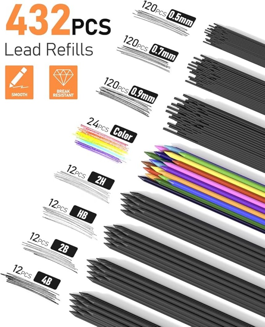 - ▶️ RECHARGES DE MINES DE GRAPHITE DE 2,0 MM : Livré avec 48 PCS 2mm de différentes duretés (2B HB 2H 4B) & 24 PCS 12 couleurs assorties de mines de graphite pour l'ombrage et le coloriage.
