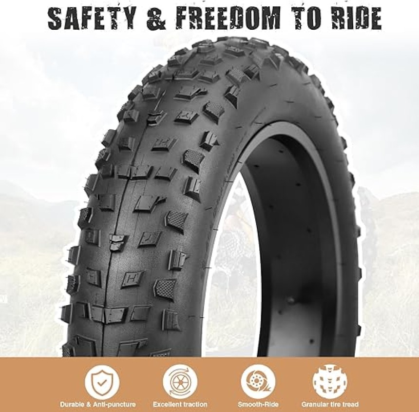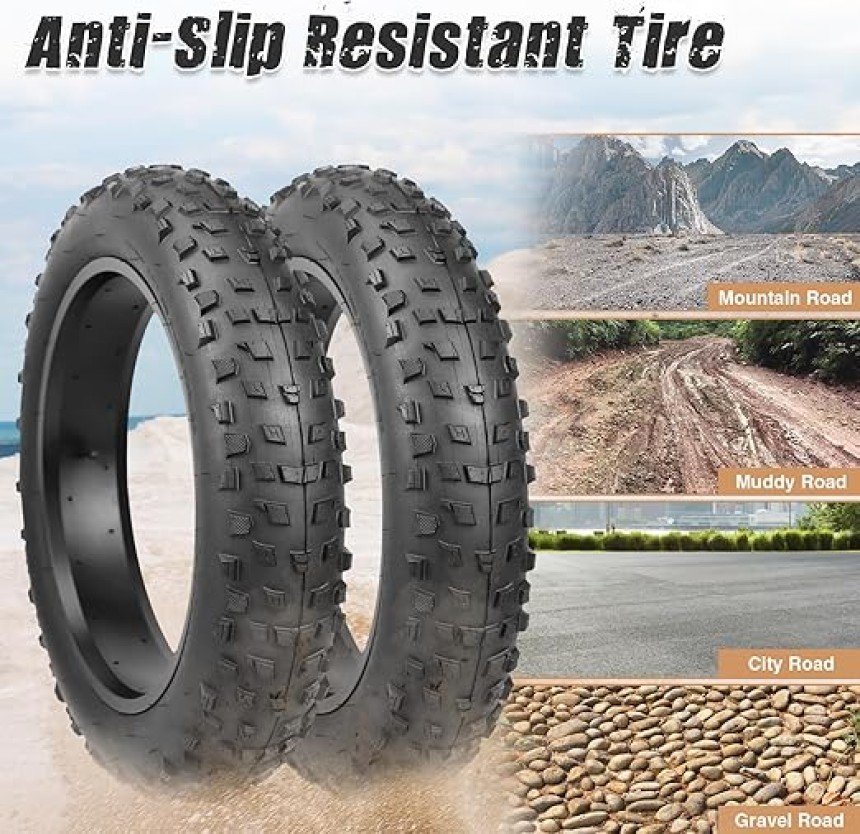 ▶️ Ce pneu de vélo en taille 20x4.0 (98-406) est conçu pour les cyclistes en quête de performance, de confort et de polyvalence. Que vous rouliez sur la route, les sentiers, la plage ou dans la neige, sa large bande de roulement vous garantit une adhérence exceptionnelle et une stabilité incomparable.