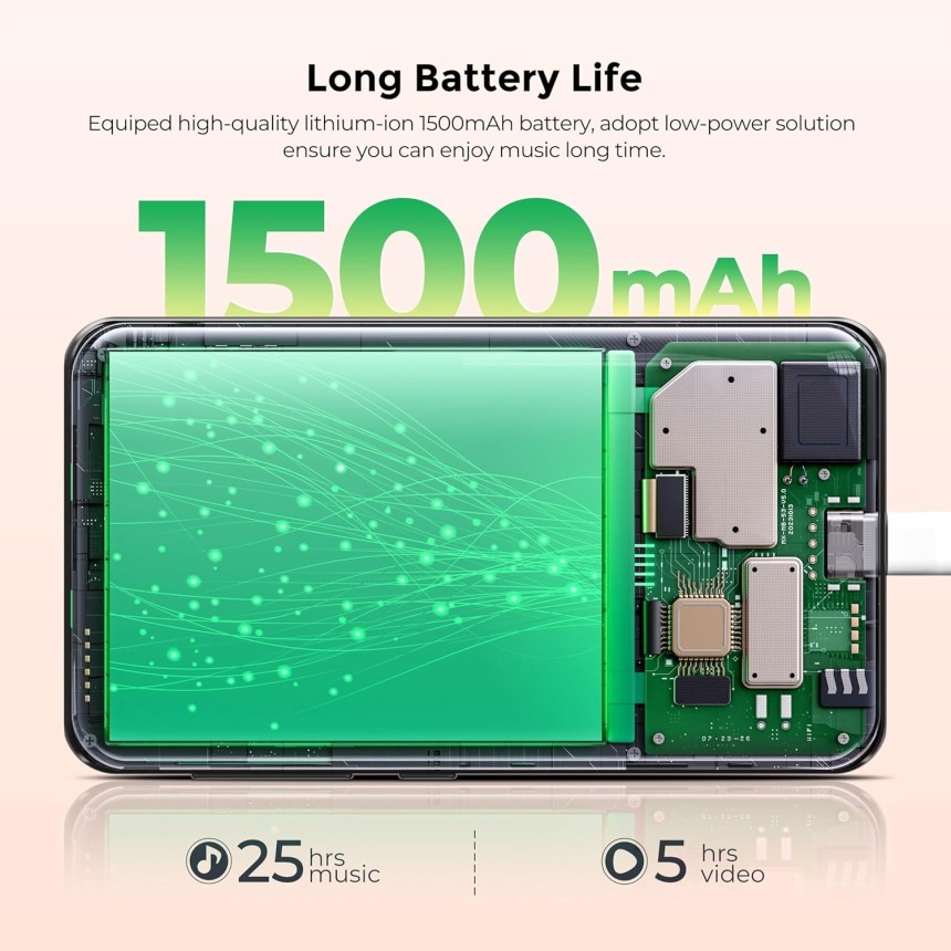 - ▶️ Durée de vie moyenne de la batterie : 3h de charge à 1500mAh + 25h de Musique ou 5h de vidéo avec écouteurs filaires à 50% de volume
