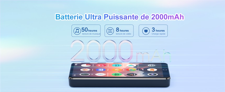 - ▶️ Durée de vie moyenne de la batterie : 3h de charge à 2000mAh + 50h de Musique ou 8h de vidéo avec écouteurs filaires à 50% de volume