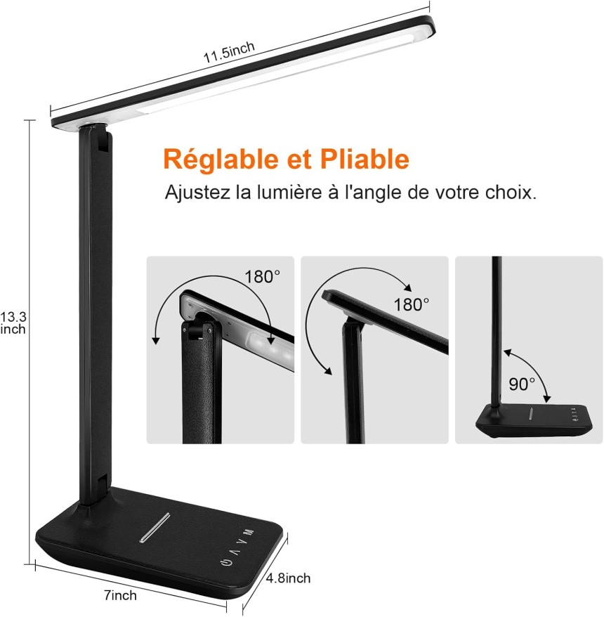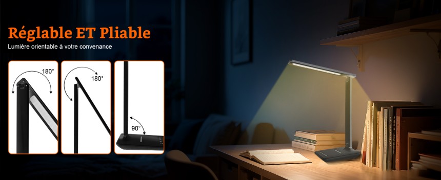 ▶️ Réglage multi-angle et économie d'espace : La lampe de bureau led pliante vous offre une lampe de lecture économe en espace avec un support réglable à 90° et un bras de lampe réglable à 180° horizontalement et de haut en bas.