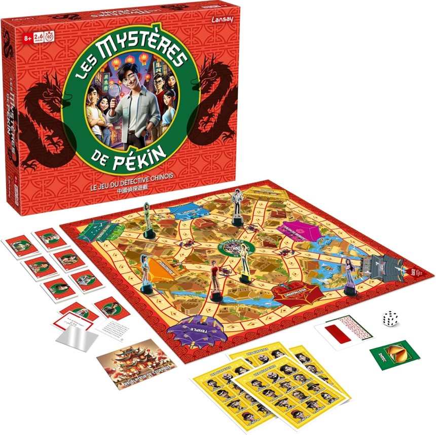 - ▶️ Plongez au cœur de la Chine mystérieuse avec Les Mystères de Pékin – Nouvelle Édition, le jeu d’enquête familial culte revisité avec 50 énigmes entièrement inédites ! À chaque partie, un mystérieux crime secoue la ville : qui a saboté un portrait ? Qui a poussé M. Can Ting dans l’aquarium ? Qui a vidé les boîtes de lessive de M. Xi Di ? Votre mission : collecter les indices, interroger les témoins et démasquer le coupable avant les autres détectives. Mais attention… certains témoins mentent, et des dragons peuvent bloquer votre progression ! Grâce aux décodeurs magiques, révélez des messages secrets et débloquez de nouvelles pistes. Chaque enquête se transforme en aventure immersive où réflexion, déduction et sens de l’observation seront indispensables. Avec son plateau coloré, ses 108 cartes, ses décodeurs, ses pions détective et son bloc d’enquête, cette édition offre une expérience complète et captivante pour 2 à 6 joueurs, dès 8 ans. Un indispensable pour les familles, les enfants, les amateurs d’énigmes et les fans du jeu original. Préparez-vous : seul le meilleur détective remportera la partie !
