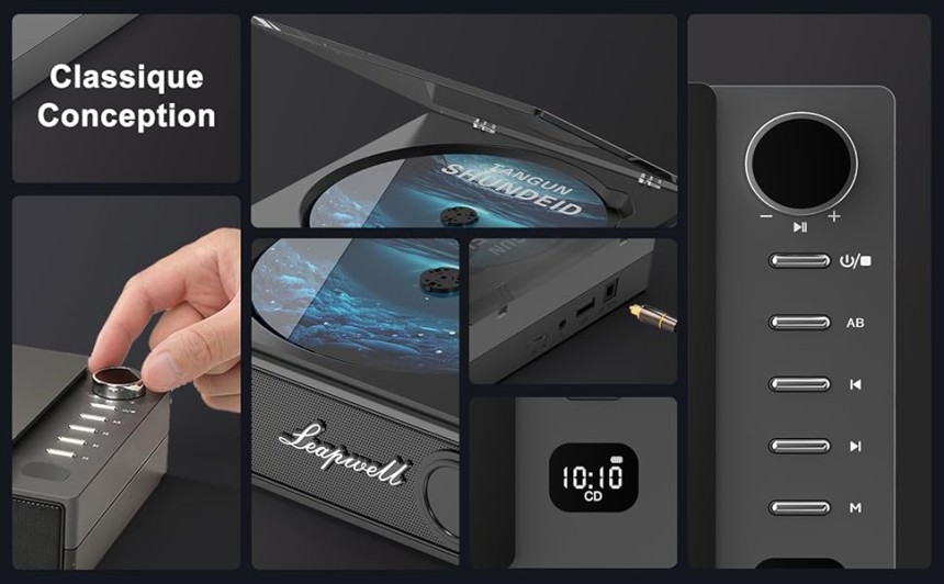- ▶️ Lecteur CD Multifonction: Leapwell lecteur CD portable prend en charge 7 modes de lecture: Lecture CD, Bluetooth, FM, USB, AUX, répétition AB et mode Optique. Investissement unique, mais peut être utilisé de différentes manières. Il est livré avec une télécommande de 15 pieds qui peut facilement changer de musique et de mode. Commencez dès maintenant à profiter de la musique sur le canapé. Lecteur CD portable