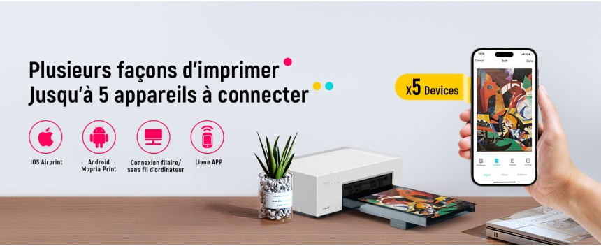 - ▶️ Compatible avec Multiples Appareils : Imprimante photo compatible pour smartphone/PC - Plus besoin d'aller dans la boutique de photographie ! Accédez aux Wi-Fi, réalisez directement l'impression instantanée depuis l'app "Photos" de ios/android smartphone, ou imprimer après éditer la photo par l'app "Liene Photo", vos photos prend vie devant vos yeux en quelques étapes. L'impression depuis l'ordinateur via USB port est aussi simple, vous pouvez savoir plus de détails dans le manuel.