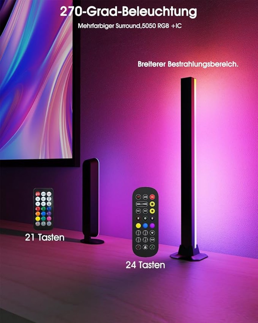 - ▶️ Bande lumineuse RVB colorée : le réglage de la couleur de la lumière est divisé en toute section et segment, offre différentes colonnes pour la sélection de couleurs ou l'édition et peut régler la luminosité. Dans l'interface de la section, vous pouvez faire des retouches DIY ou effacer la couleur de cette section et ajuster l'effet de gradient