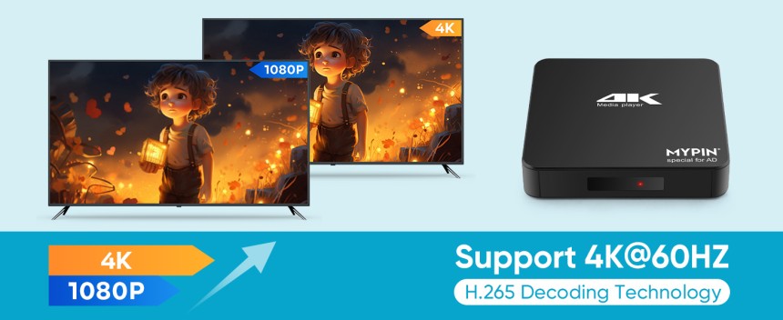 - ▶️ Affichage d'écran vertical et d'épissage : Avec une sortie d'image rotative, 270 degrés, plusieurs paramètres, flexible et polyvalent compatible avec votre écran vertical, permet à quiconque d'utiliser facilement de beaux panneaux numériques, vous pouvez l'utiliser sur votre écran publicitaire pour afficher votre vidéo publicitaire.