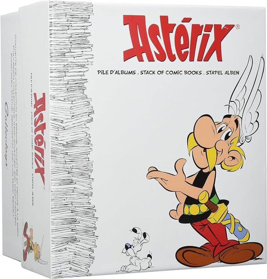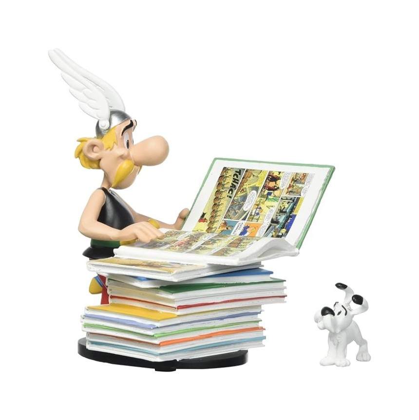 - ▶️ Astérix à côté d'une pile d'albums avec Idéfix. Statuette réalisée entièrement en résine et peinte à la main. Hauteur: 23cm. Pour les véritables amateurs de BD franco-belge.