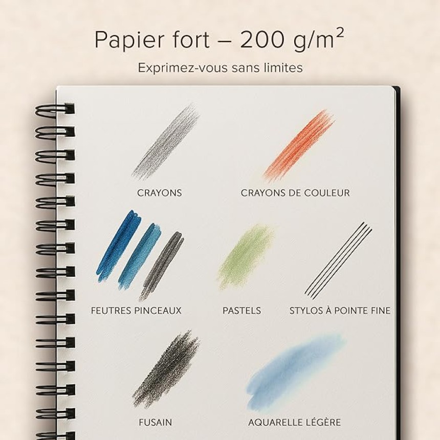 - ▶️ 1x Carnet à Dessin Relié - A4 - avec 40 feuilles
