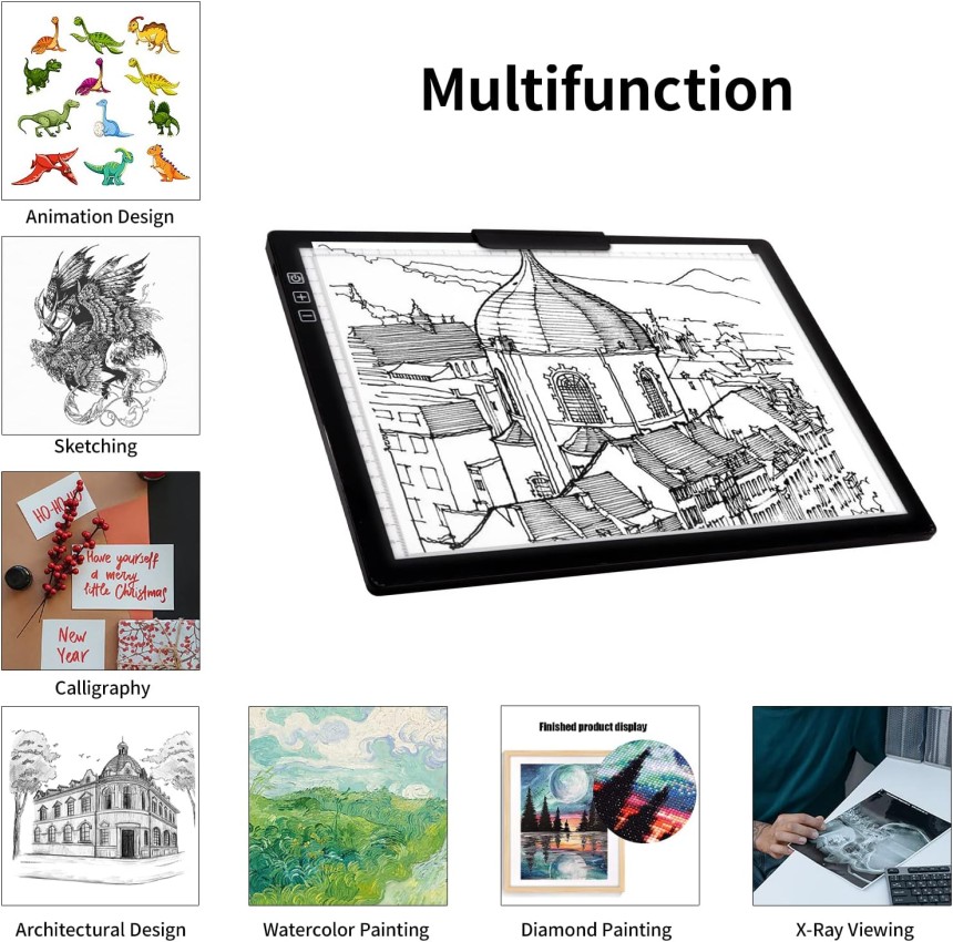 - ▶️ Large application : la planche à dessin lumineuse est idéale pour le dessin, le suivi, l'esquisse, l'animation, la visualisation aux rayons X, la calligraphie, la peinture au diamant, la conception architecturale, les projets de couture, le design de mode, le design industriel, etc. compétences en dessin et aussi un cadeau incroyable pour la journée des enfants, Noël, les anniversaires ou toute autre fête.