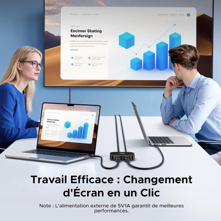 - ▶️ USB-C Alimenté : Ce duplicateur HDMI est équipé d'un port d'alimentation USB-C, il doit être connecté à une alimentation externe (5V/≥1A) pour fonctionner correctement.