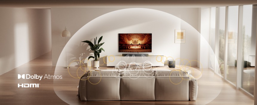 Barre de Son TV avec Dolby Atmos + 5.1ch + Puissance : 340W RMS
