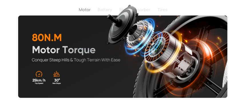 - ▶️ Suspension complète : Le T5 est équipé d'un capteur de couple de 80 Nm, pour garantir une conduite douce et réactive. Les freins à disque mécaniques assurent également une puissance de freinage fiable dans toutes les situations, que ce soit sur route sèche, route mouillée ou terrains accidentés. Cette combinaison de suspension complète et de système de freinage fait du T5 un compagnon parfait pour tous les types de terrains.